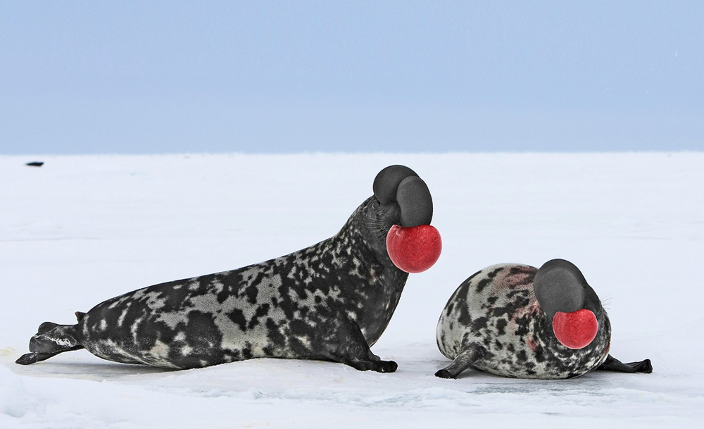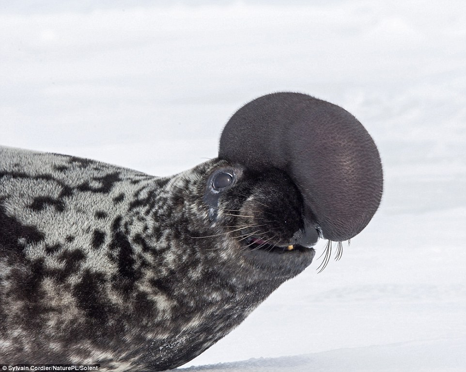 Помните, как в детстве мама выгоняла вас из воды со словами «вылезай, а то сопли заработаешь»? Так вот, права была мама! Самцов хохлачей из воды не выгоняют, вот они почти всю жизнь с соплёй под носом и ходят! Оно и неудивительно — хохлачи живут в северной части Атлантики. Вода там всегда будоражуще прохладная. Но ластоногие не унывают, они сделали повисшую из носа перепонку своей фишкой!