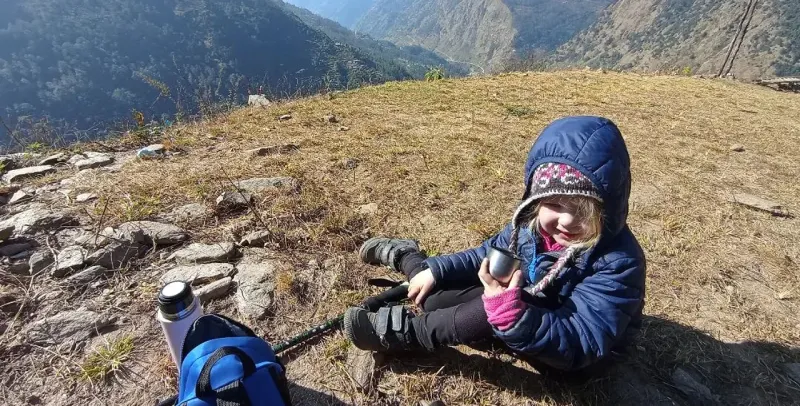 Чтобы добраться до базового лагеря Эвереста, малышке вместе с отцом, семилетним братом Сашей и непальским носильщиком пришлось пройти пешком около 270 километров, столкнувшись со многими препятствиями, включая низкие температуры, опускавшиеся до -20-25 градусов по Цельсию.