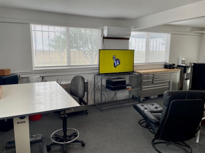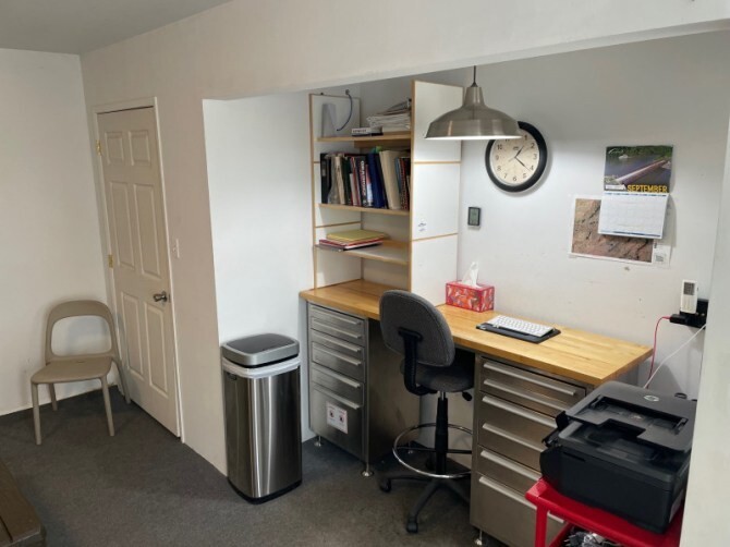 В отличие от большинства домов, вы заходите через гараж, который совмещён с мастерской по обработке дерева.