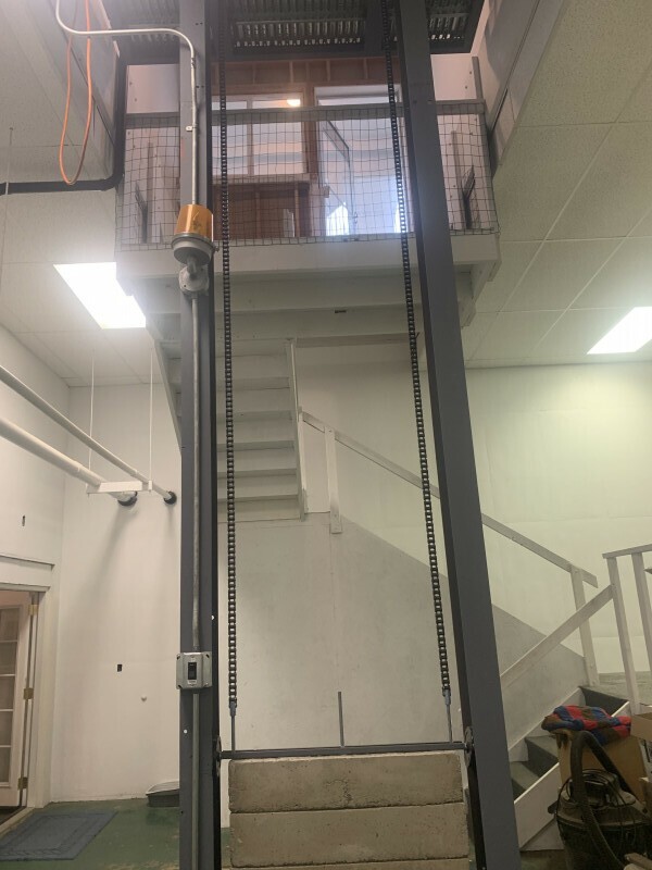 Спустившись по лестнице, вы попадаете в лифт, который доставляет вас на нижний этаж. Здесь вас ждёт большая кухня с обеденной зоной, вентилятором, холодильником и духовкой.