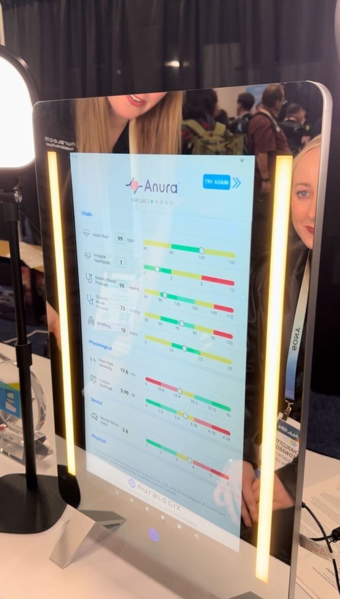 Канадская компания NuraLogix представила Anura MagicMirror, или "Волшебное зеркало", на выставке CES 2024 в Лас-Вегасе. Устройство всего за 30 секунд проверяет более 100 показателей здоровья человека.
