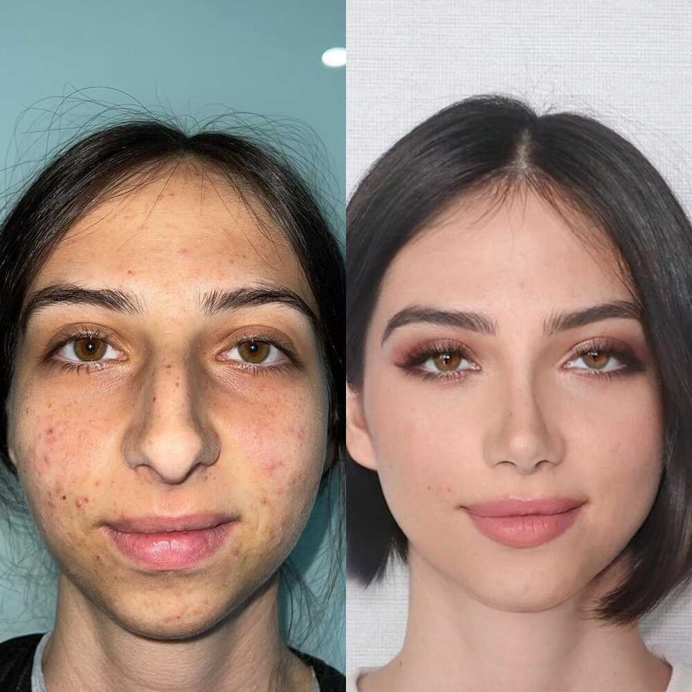 Помимо ринопластики девушке сделали операцию по омоложению кожи под глазами, операцию на ямочках, подтяжку губ и темпоральный лифтинг.
