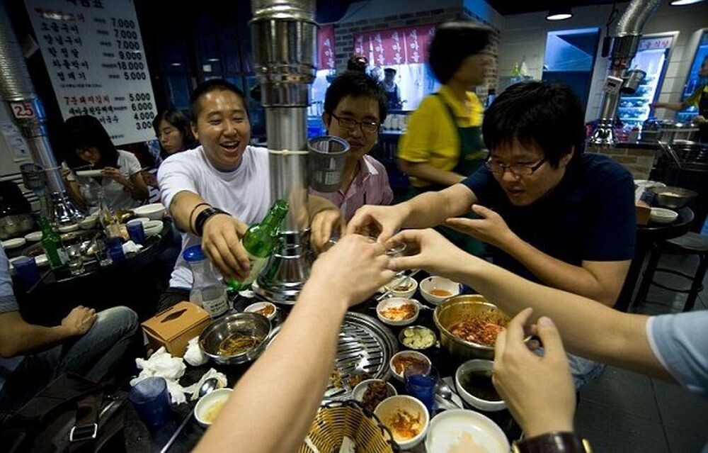 Граждане Южной Кореи любят выпить, причем делают они это по поводу и без. Они пьют после окончания трудового дня, на праздниках, дружеских встречах, корпоративных посиделках и во время налаживания деловых или личных контактов.