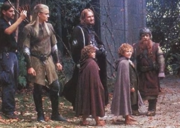 8. Но конечно же далеко не во всех сценах можно было создать иллюзию разницы в росте между хоббитами, гномами и людьми с Гендальфом. В этих случаях уже использовали либо хромакей (синий экран), либо привлекали дублеров - детей и карликов.