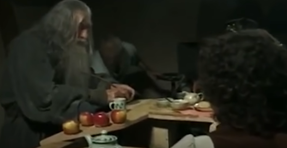 7. Во время разговора Фродо и Гендальфа нам кажется, что Гендальф гораздо выше и больше хоббита. Но на самом деле это не так, и компьютерная графика с хромакеем здесь не причем.