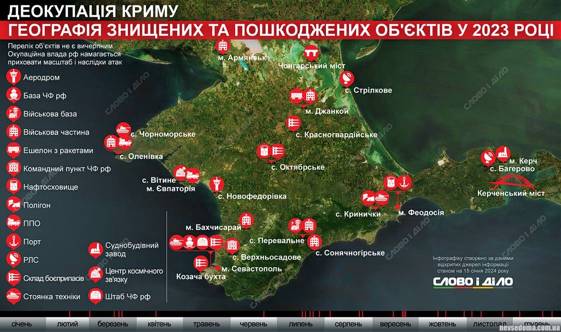 - Поврежденные и уничтоженные военные объекты в Крыму за 2023 год: