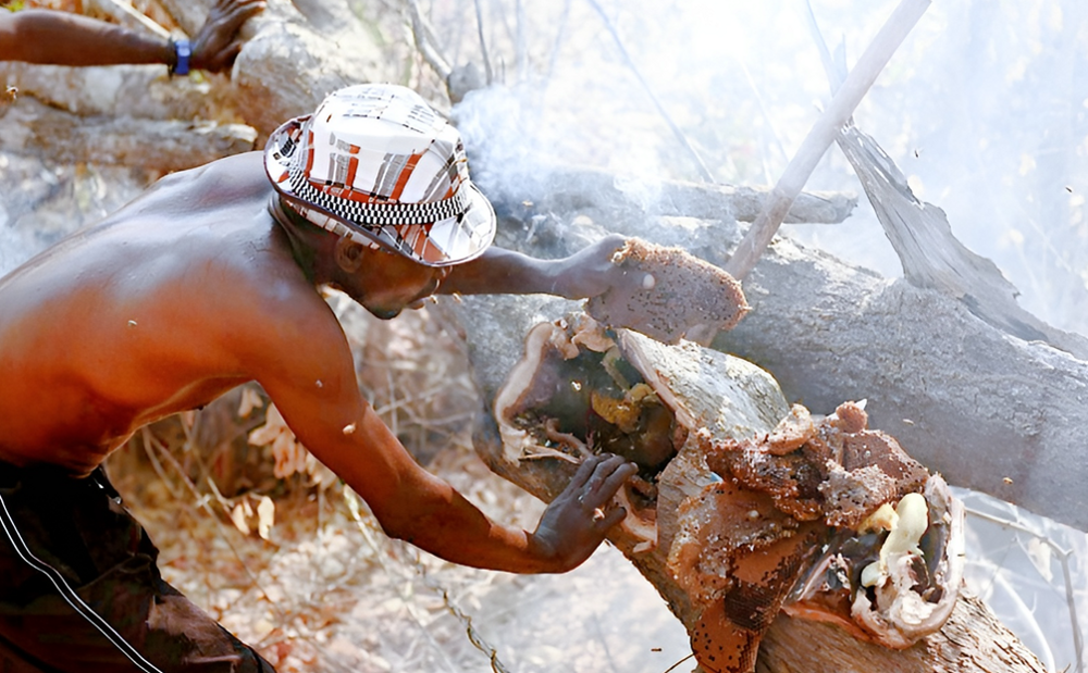 Укусы пчел для них крайне болезненны опасны. Именно поэтому, чтобы добраться до лакомства, хитрые медоведы используют человека. Птицы приводят его к улью, расположенному в дупле дерева. В свою очередь африканцы окуривают насекомых, те засыпают, а затем охотники добывают мед. После этого люди оставляют своим пернатым коллегам небольшие кусочки воска. И те начинают пировать!