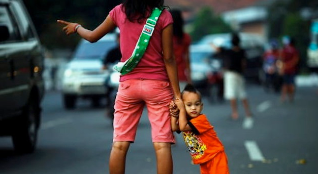 А так они добираются из деревень в город, чтобы работать автостопщиками, вместе с детьми