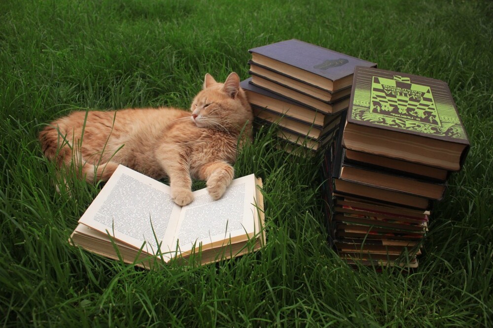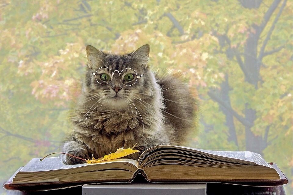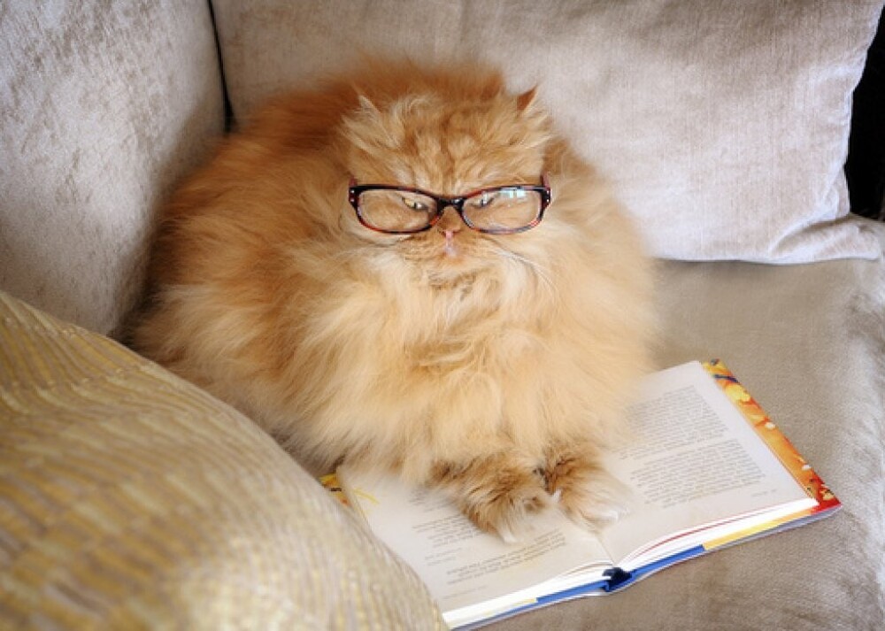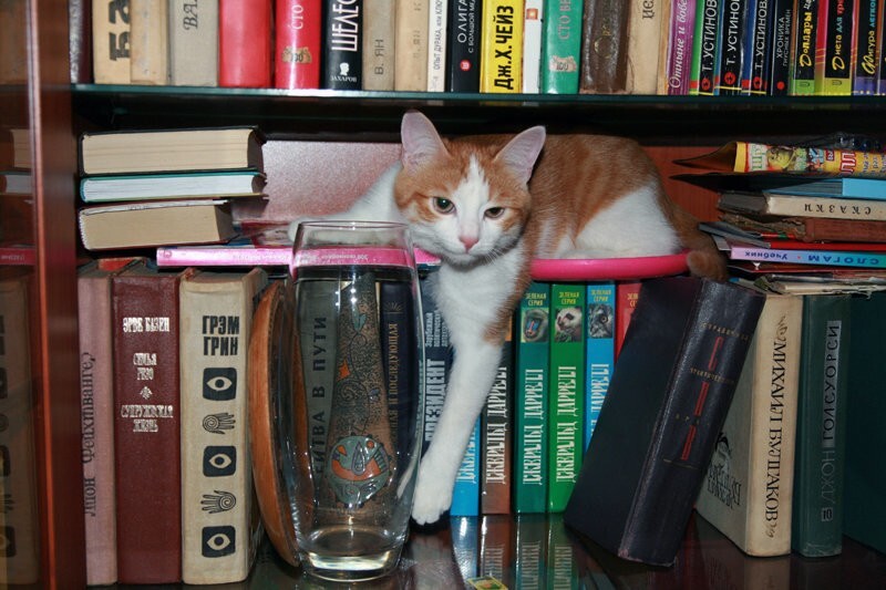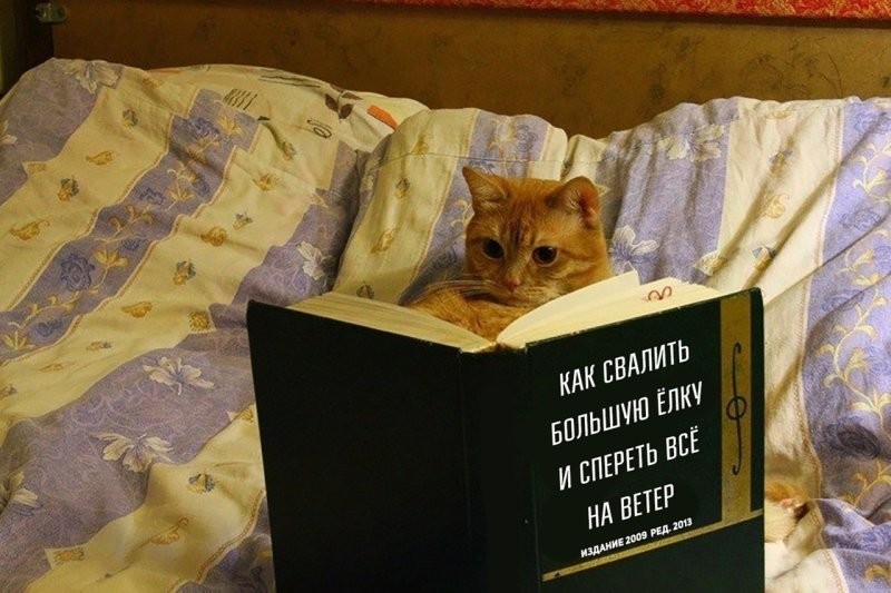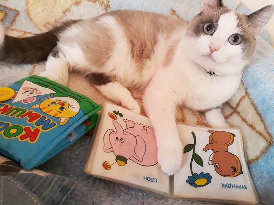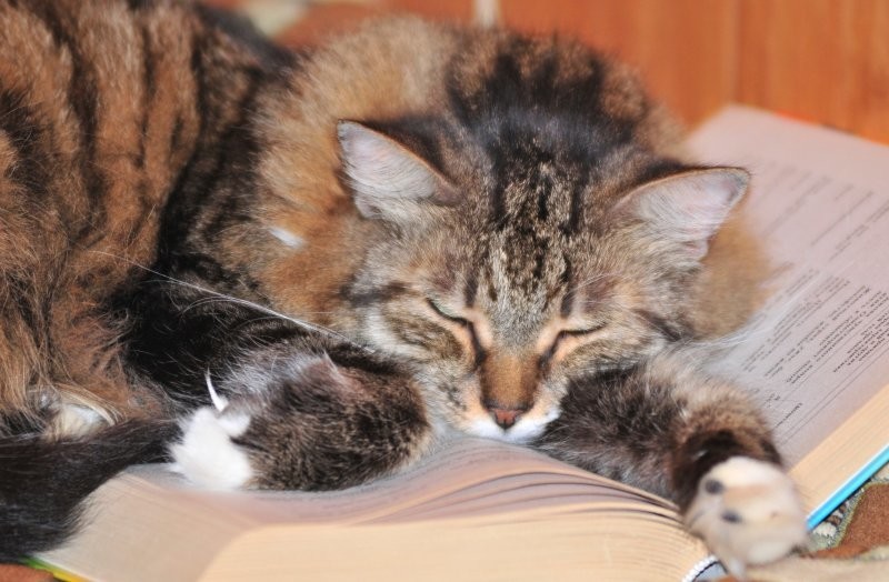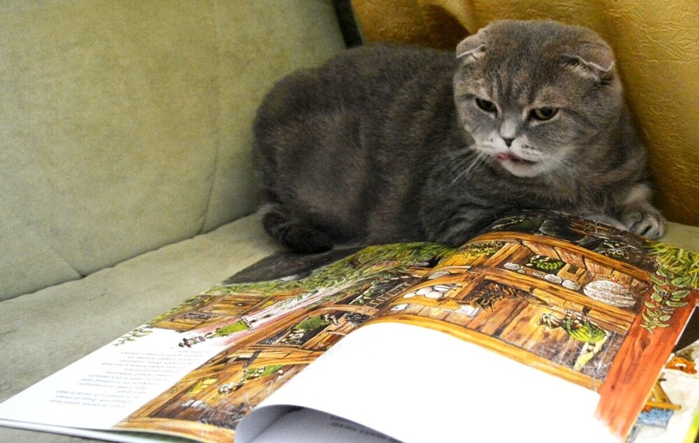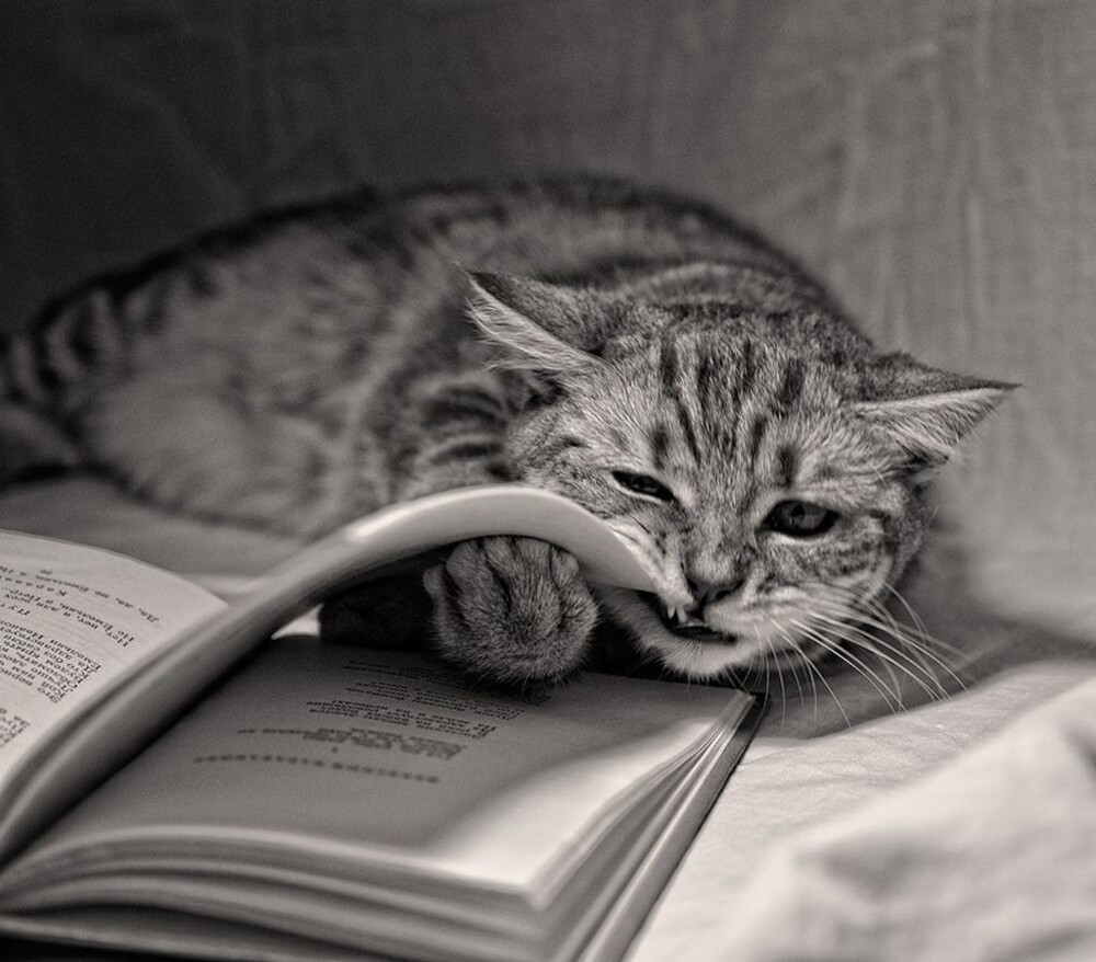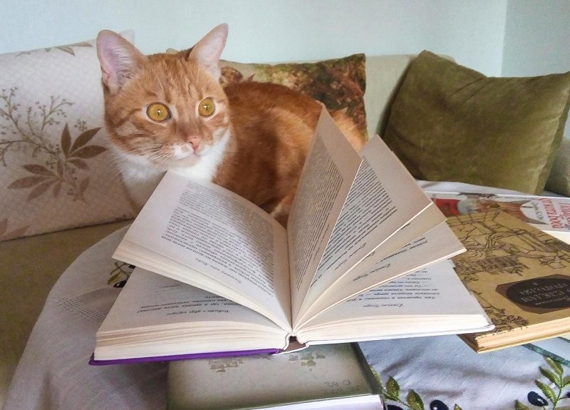 Видимо, поэт разбирался в кошачьей психологии. А фото потомков кота учёного наглядно доказывают, что для пушистых прекрасно любое чтиво. Вот только обсуждать содержание фолиантов с кожаными они пока ещё не готовы.