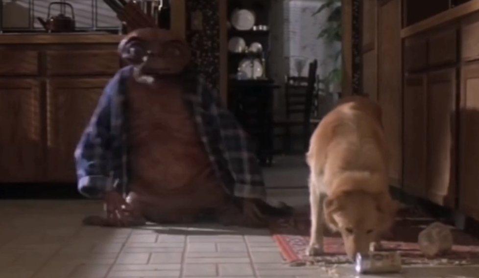 Наверняка, многие из вас помнят сцену на кухне, когда ET открыл холодильник и хлебнул пива. В тот момент в костюме инопланетянина находился 12-летний безногий мальчик Мэтью Де Меррит.