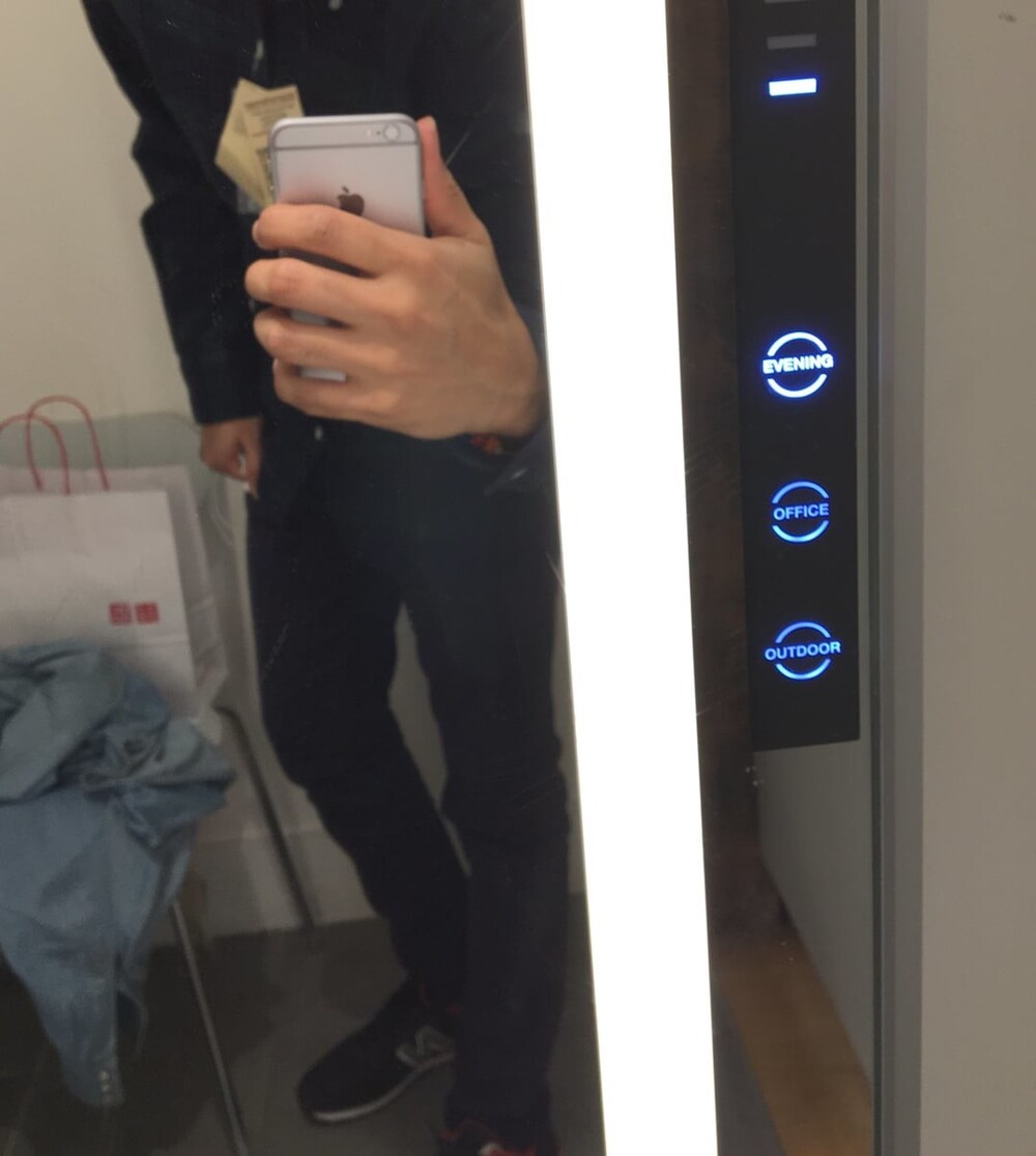 8. Зеркало в примерочной, которое воспроизводит освещение вечером, в офисе и на улице