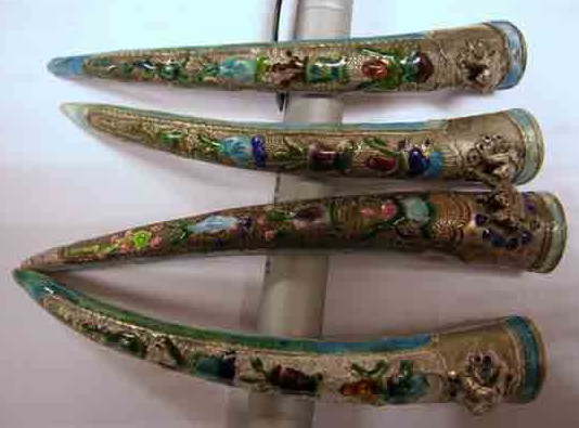 Такие ногти ломаются и гнутся, потому ремесленники быстро смекнули и стали делать для богачей и знати специальные футляры для ногтей, инкрустированные камнями и украшенные узорами. Поистине произведения ювелирного искусства.