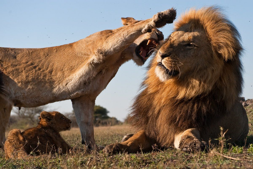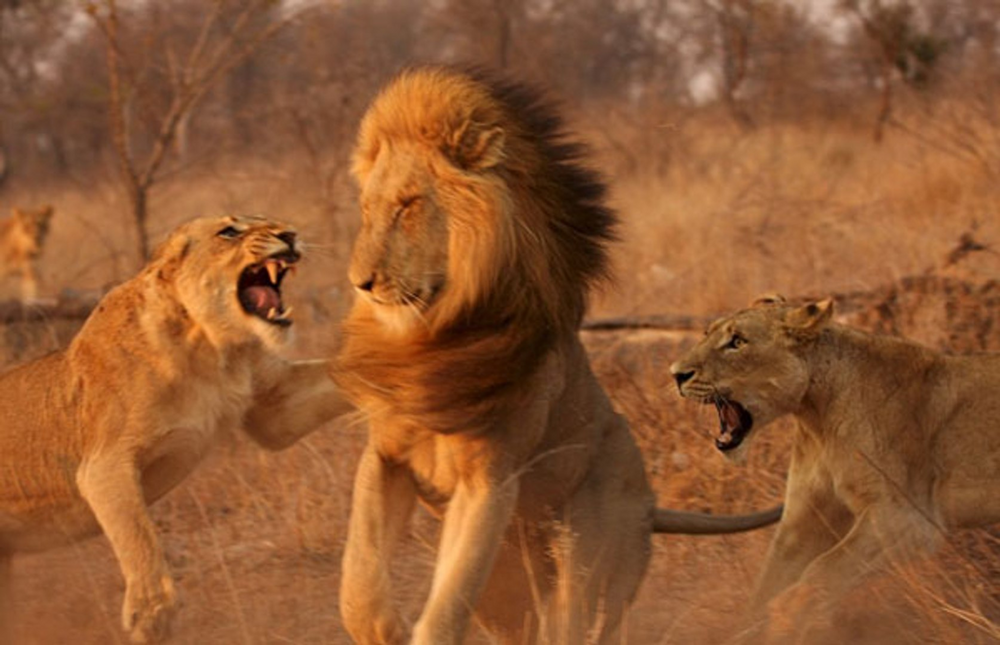 Но иногда захватчики умудряются разозлить сразу 3-4 самок. Тогда дружный женский коллектив, объединившись, вламывает своему новому королю по первое число. Таким глупцам приходится с позором удалиться с земель прайда.