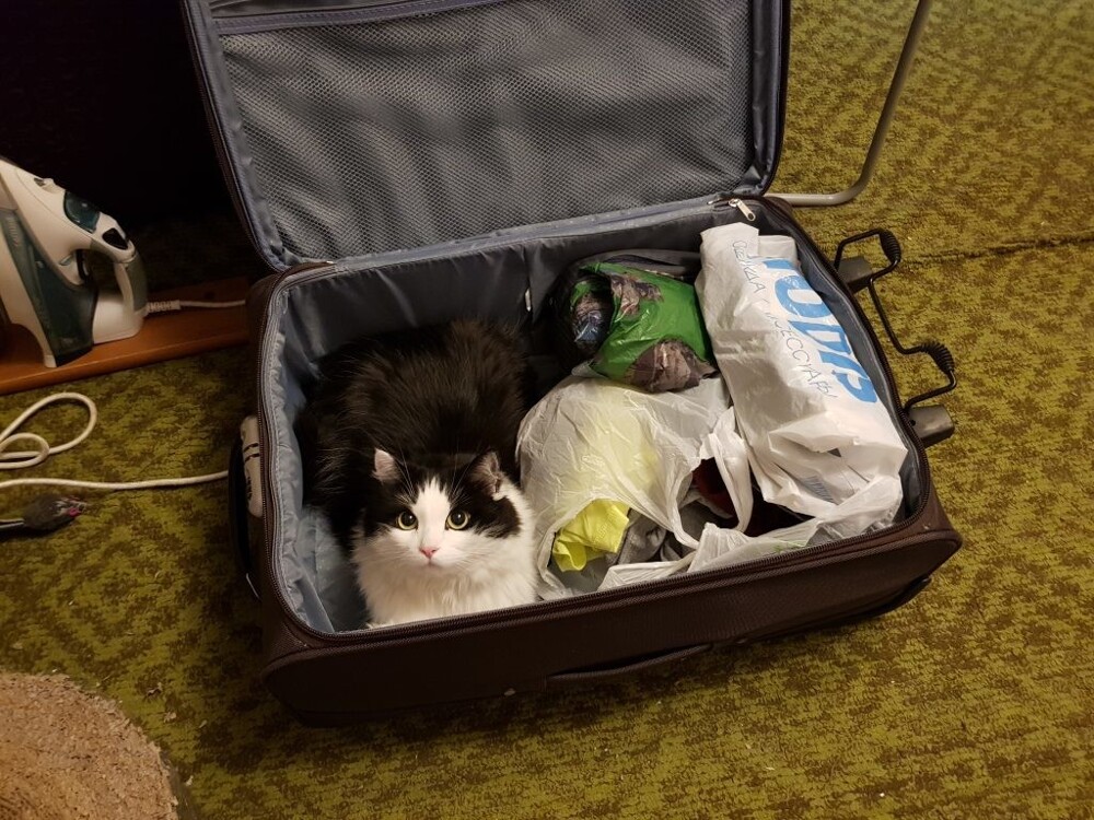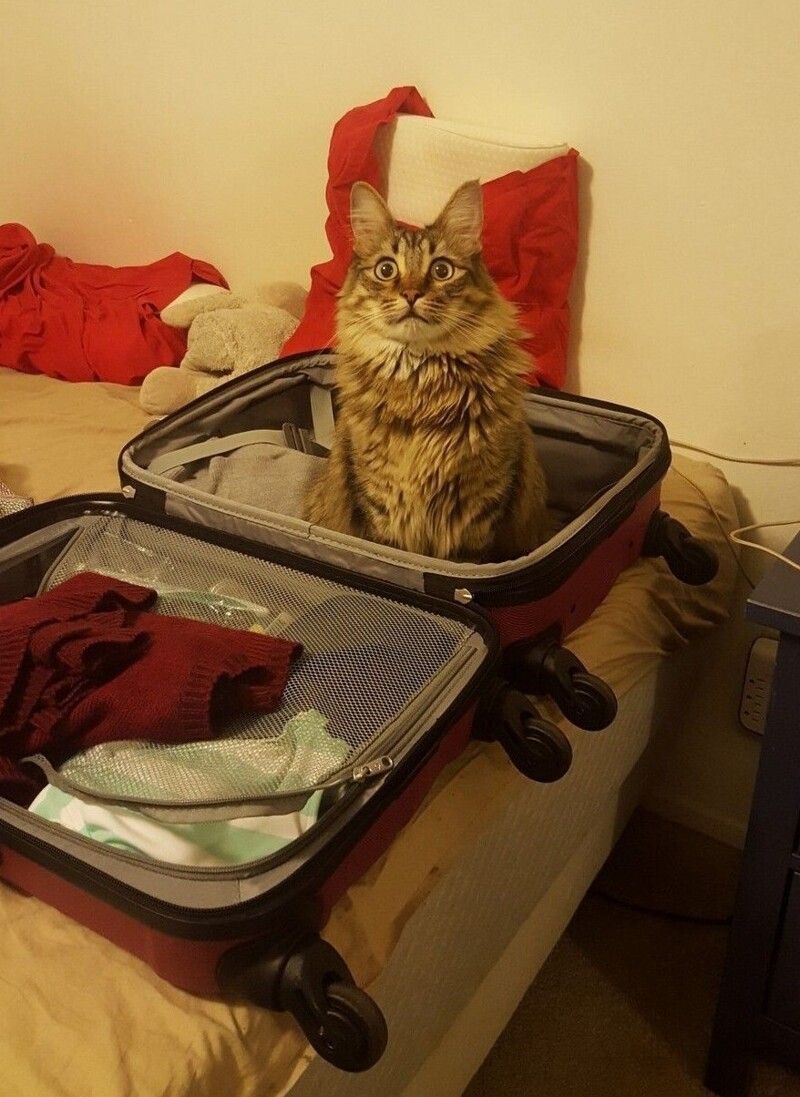 Собирать и сортировать вещи, аккуратно пряча что-то нужное или ненужное под кровать, подсказывать громким радостным мявом важные моменты и с помощью пушистой тушки измерять объём чемодана и дорожной сумки, дабы понять, сколько те ещё способны вместить. Словом, стараться всеми силами побыстрее закончить суету и выпроводить заполошных кожаных, чтобы вдоволь насладиться покоем и тишиной. Возможно даже в процессе он подумывает о совместном отдыхе, но в итоге предпочитает милый дом.
