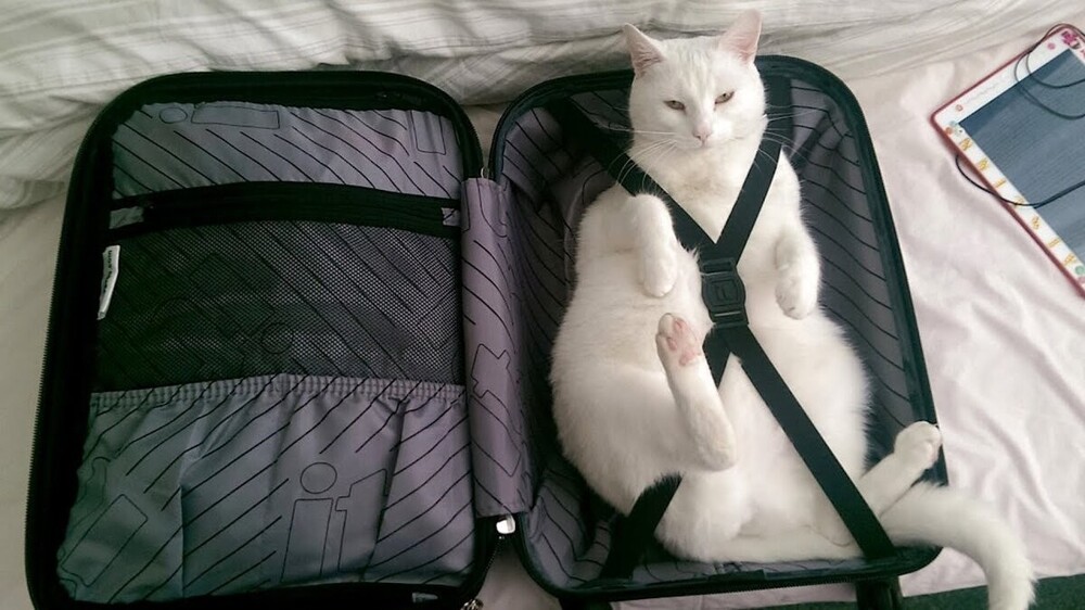 Котики в основной массе – это домоседы, которые очень привязаны к привычной среде обитания, лежанке, миске, тёплому хозяйскому боку. Но если у хозяина появляется желание переправить этот самый бок с прочими частями организма к тёплому морю, в горы или другое интересное место, то питомец будет яростно помогать.