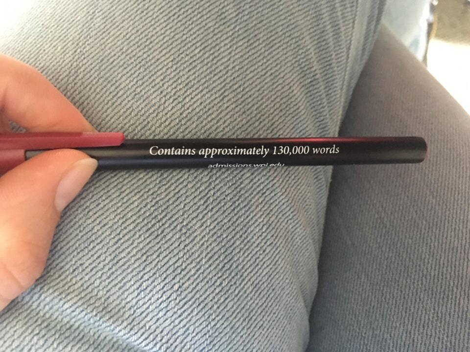 15. На этой ручке написано, сколько слов можно ей написать, пока не закончатся чернила