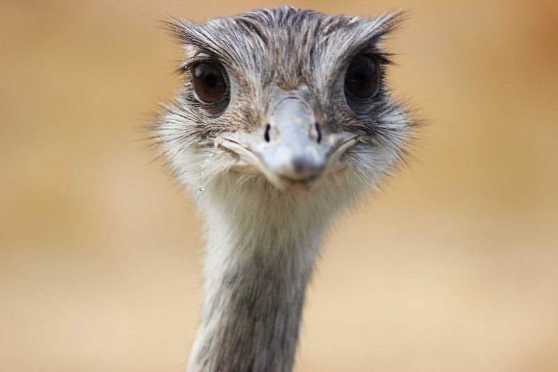 Каждый глаз страуса по размеру похож на бильярдный шар, что оставляет очень мало места в его черепе для мозга. Он у птицы размером с грецкий орех и весит вдвое меньше, чем одно из его глазных яблок.