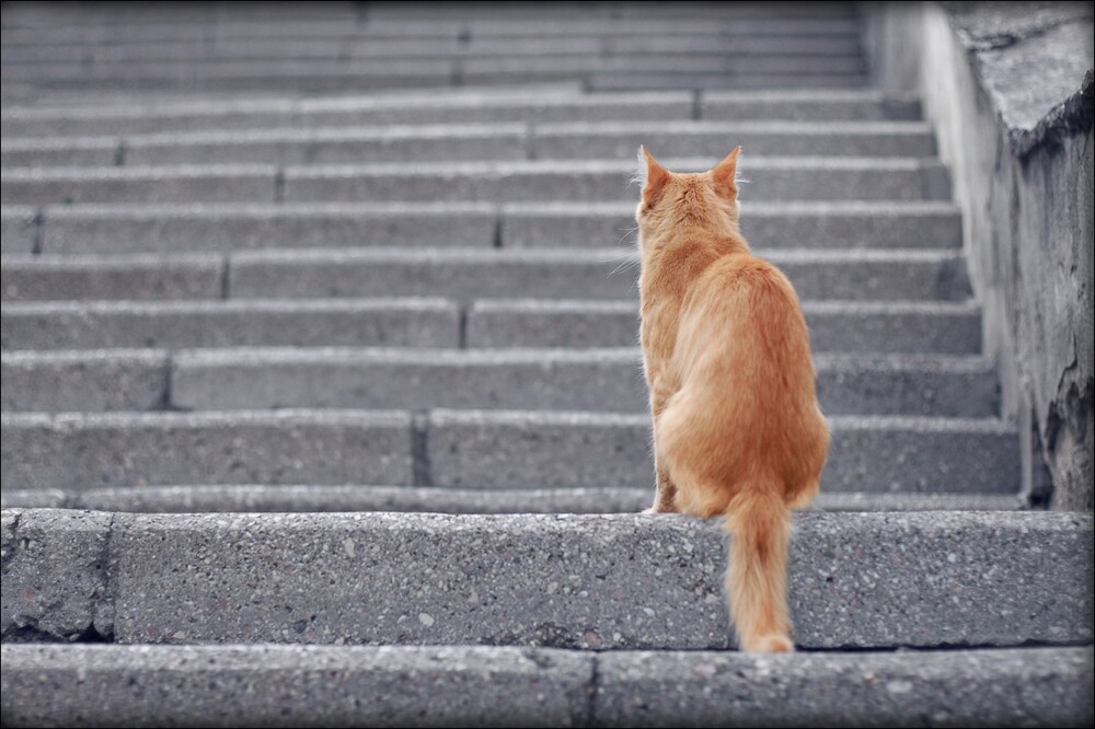 А если по нему прошествует, на секунду остановится или присядет пушистый ходок, то непримечательная конструкция превратится в проход между мирами, выход на новый уровень или, как минимум, чудесный фон для фотографии. Ибо котик на лестнице – это прекрасно.
