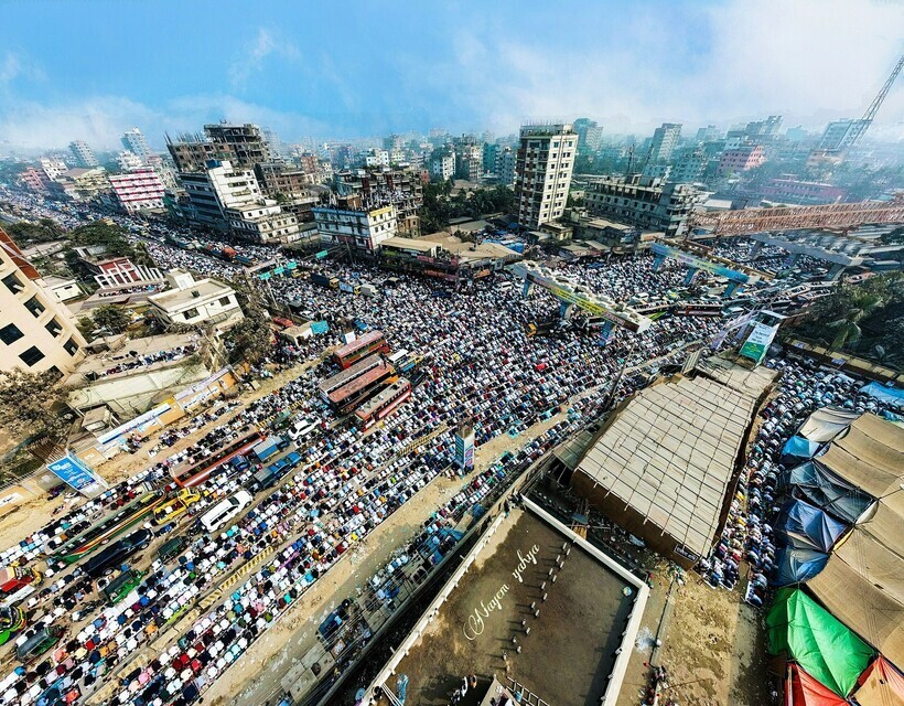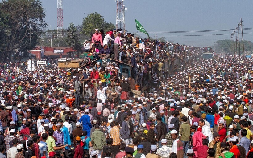 Бишва иджтима — одно из важнейших событий в жизни мусульман Бангладеш. Проводят его на берегу реки Тураг на окраине Дакки. Этот город и так считается одним из самых густонаселенных на планете , но во время бишвы иджтимы здесь творится настоящее безумие. Три дня люди живут в палатках под открытым небом, едят скромную пищу, молятся и слушают мусульманских ученых, которые трактуют Коран.