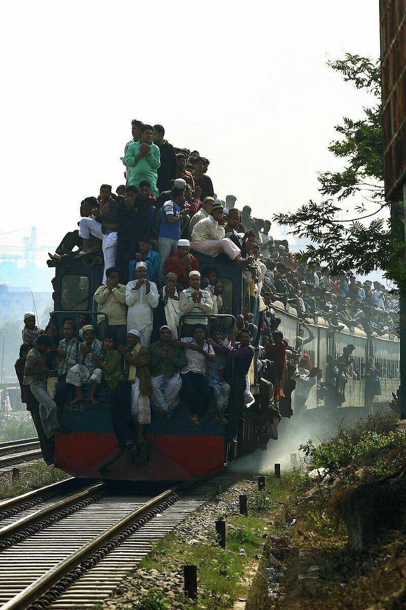 Если вы когда-нибудь видели эти ужасающие фотографии переполненных поездов в Бангладеш, то знайте, ездят они так не каждый день. На самом деле в таком составе местные жители чаще всего едут на очень важное для них мероприятие, которое проводят раз в год, — это бишва иджтима (Bishwa Ijtima).