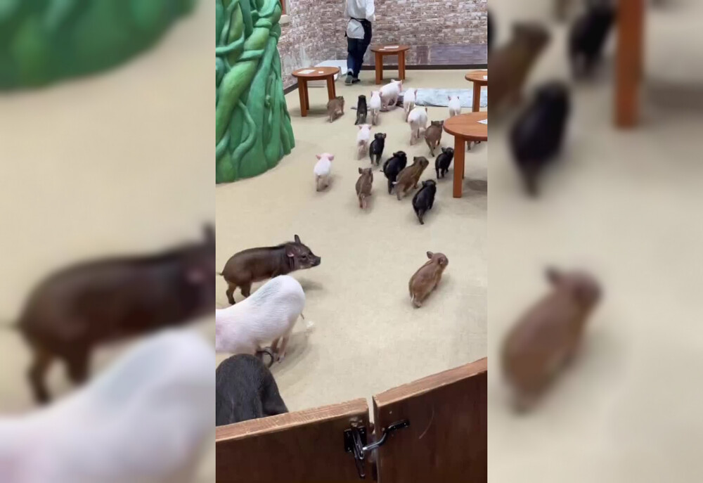 Только по миру прошлась волна популярности котокафе, как теперь Япония задает новый тренд. Гостям заведений предлагают провести время в компании маленьких свиней. С ними можно играть, фотографироваться и даже кормить. За такое удовольствие клиенты платят 2200 иен (14 долларов) за 30 минут.