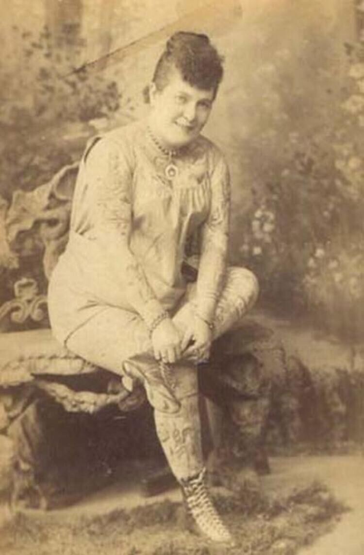 Нора Хилдебрандт – первая татуированная дама, её выдуманная и настоящая биография (5 фото)