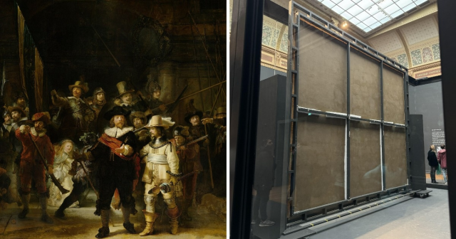 Это оборотная сторона картины Рембрандта «Ночной дозор». Картина, чьё официальное название «Выступление стрелковой роты капитана Франса Баннинга Кока и лейтенанта Виллема ван Рёйтенбюрга», имеет внушительные размеры: 3,79 на 4,53 метра.