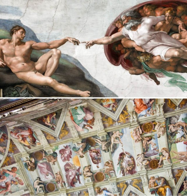 «Сотворение Адама» не так уж и просто найти на потолке Сикстинской капеллы. Сверхпопулярной стала именно эта композиция, хотя тут точно было из кого выбрать.