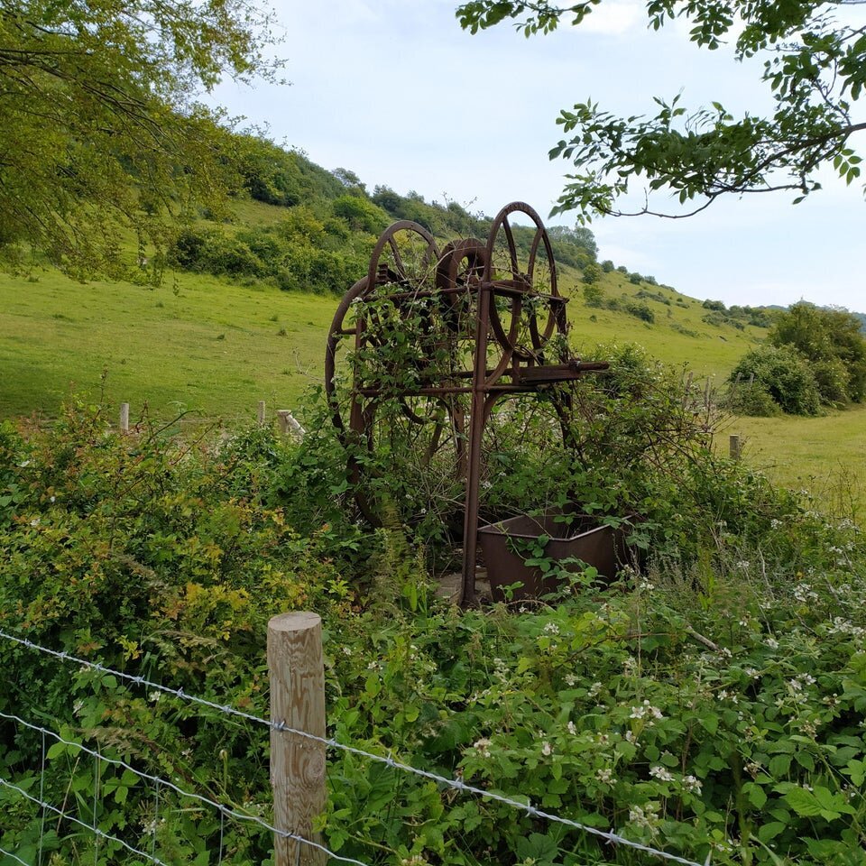 Это лебёдка из кованого железа Tasker & Co., примерно 1865 года. Эти лебёдки использовались, чтобы доставать воду из глубоких колодцев.