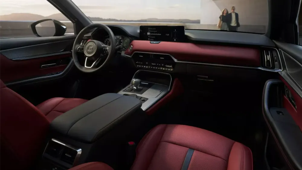 Судя по фото интерьера, в салоне также не произойдёт радикальных изменений. При этом Mazda уже пообещала оснастить CX-70 для рынка Северной Америки голосовым помощником Alexa от Amazon — кроссовер станет первой «Маздой» с этой функцией. Кроме того, отказ от третьего ряда сидений позволил увеличить объём грузового отсека и сформировать под его полом дополнительное пространство для поклажи.