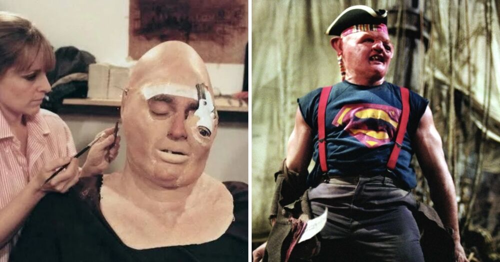 Джон Матушак гримируется под Слота за кадром фильма «Балбесы» (1985)