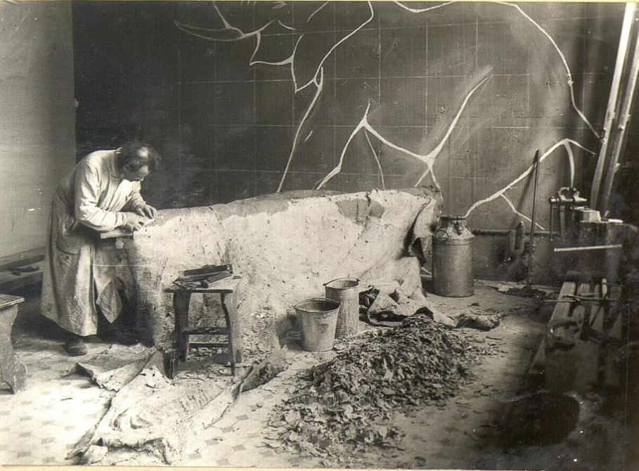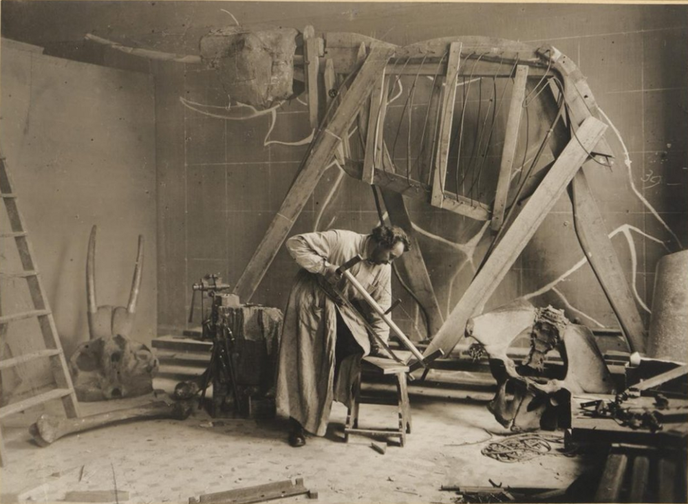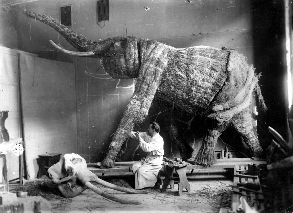 Ф.Е. Федулов за работой над чучелом африканского слона. 1927 г.