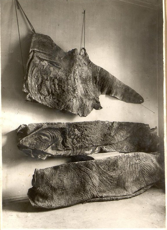 Три части шкуры африканского слона до выделки на кожевенном заводе. 1927 г.
