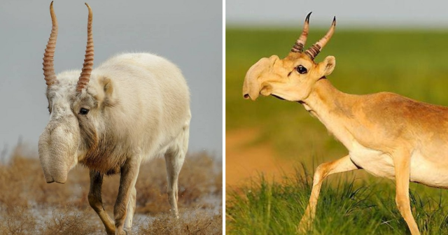Главная фишка сайгаков — непропорционально большая голова, а также мягкий, подвижный хоботок.