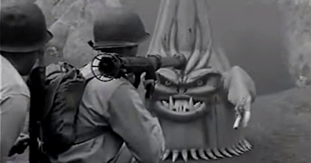 Фантастические фильмы и ужастики из первой половины/середины 20 века — это умора! Особенно те, где присутствуют всякие монстры, инопланетяне и другие вымышленные существа. Никаких вам реалистичных спецэффектов и крупных бюджетов из-за специфики жанра, но при этом создавать подобное кино уже хотелось многим. Поэтому фантастические монстры создавались из подручных средств с помощью незамысловатых костюмов, картона и изоленты. Почти все были антропоморфными и выглядели соответственно.