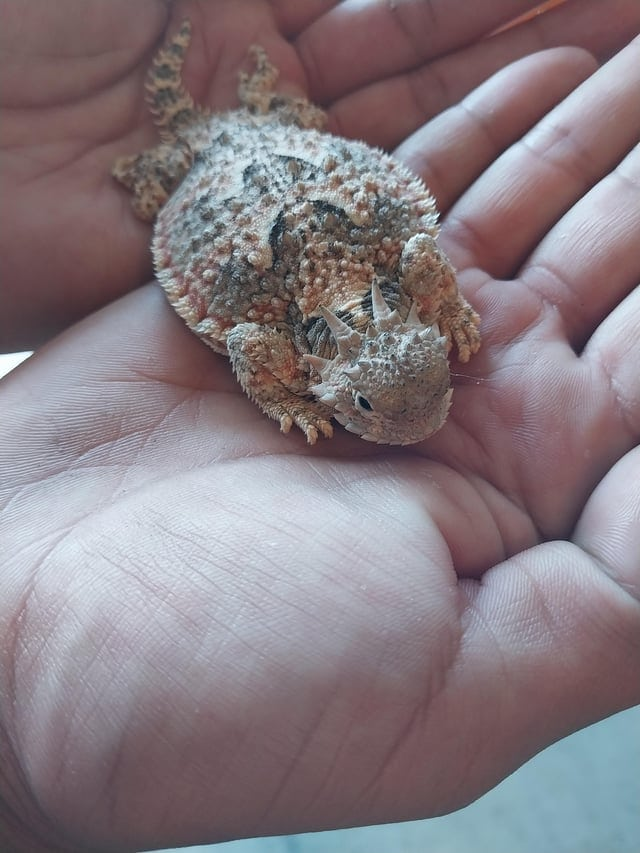 Это солнечная рогатая ящерица. Она умеет стрелять кровью из глаз.