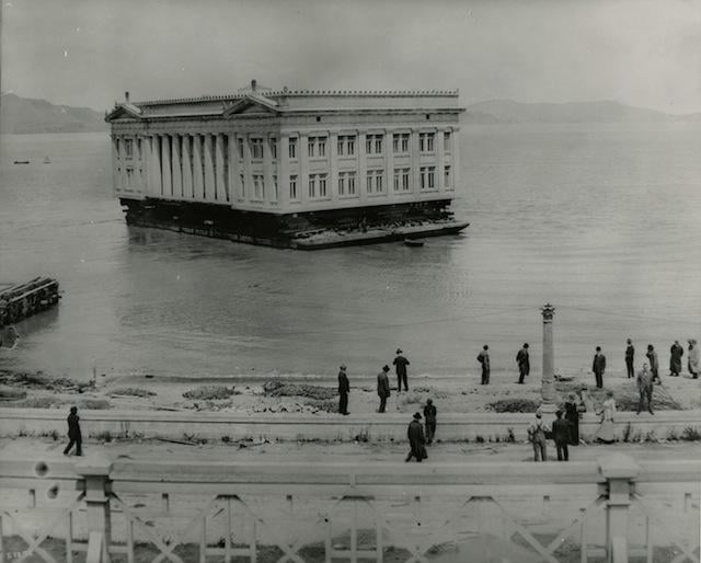 Было возведено специально для Панамо-Тихоокеанской международной выставки 1915 года, проходившей в Сан-Франциско в честь окончания строительства Панамского канала. После окончание выставки здание по воде переправили в город Сан-Матео, где оно, побывав загородным клубом, баром и мастерской запчастей для самолётов, сгорело в 1956 году.