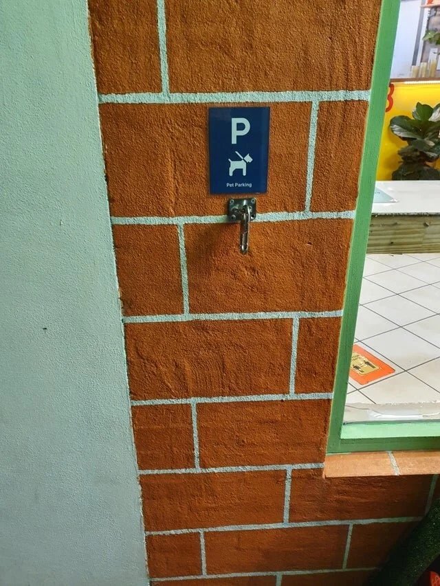 "Парковка" для собак возле кафе.