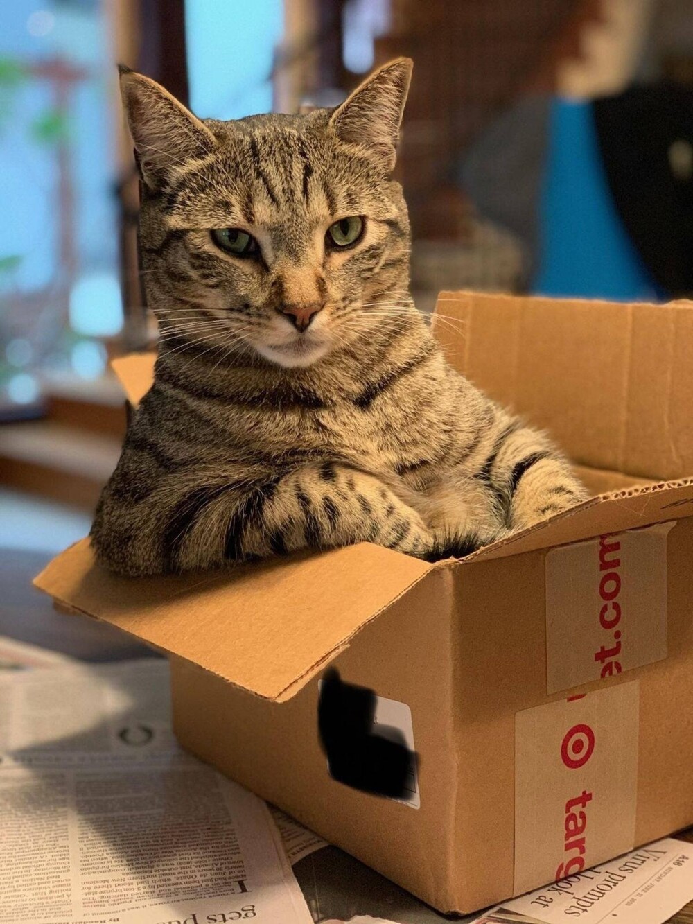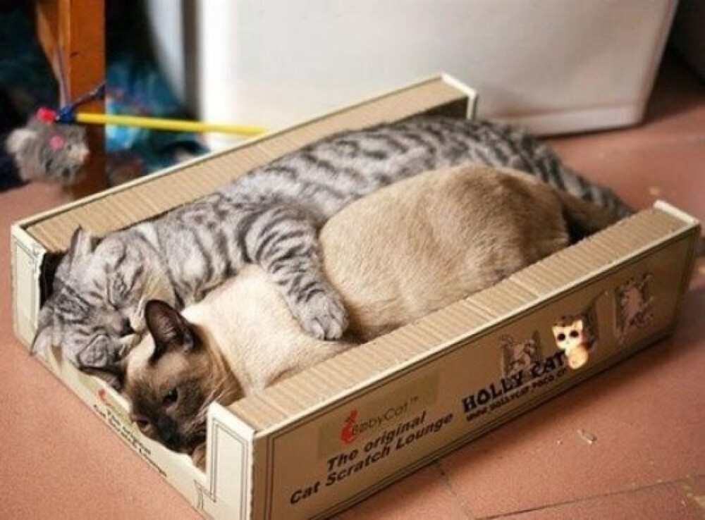 Чем пушистых привлекают обычные картонные коробки? Учёные считают, что причина в тепле и комфорте. А ещё кошки оборудуют внутри что-то типа кабинета психологической разгрузки, чтобы отдохнуть от повседневных дел. И поджидают добычу, помня о древних инстинктах, чтобы неожиданно и яростно атаковать хозяйскую ногу. Вне зависимости от причин выглядят эти хитрые создания более чем эффектно, особенно если учесть, что в коробку они лезут исключительно по собственной инициативе.