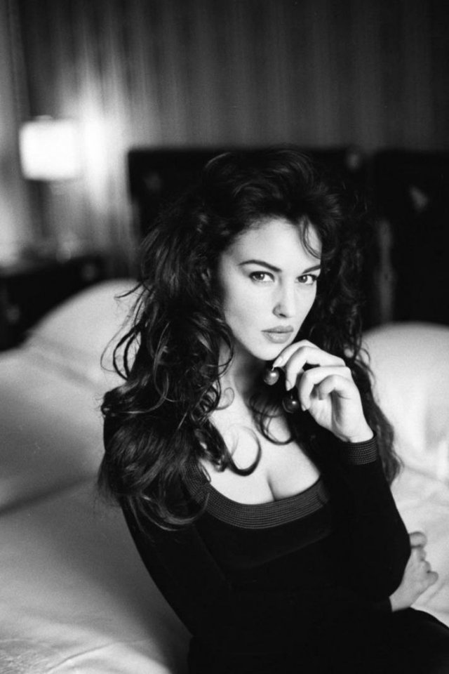 На дворе 1996-й год, в объективе еще молодая и не такая знаменитая Моника Беллуччи. Фотосессия происходит в номере отеля. Эх, как красиво!