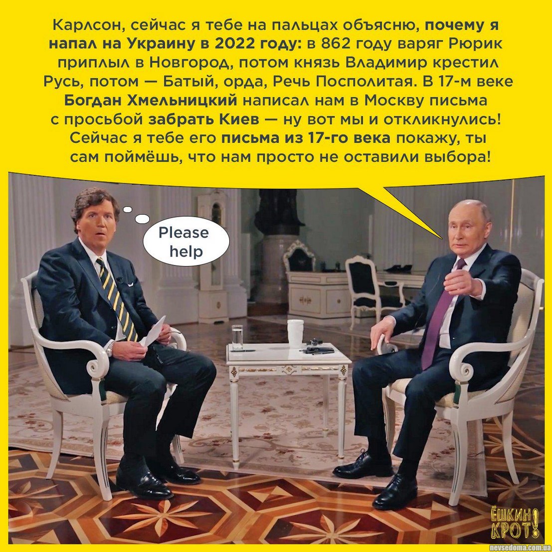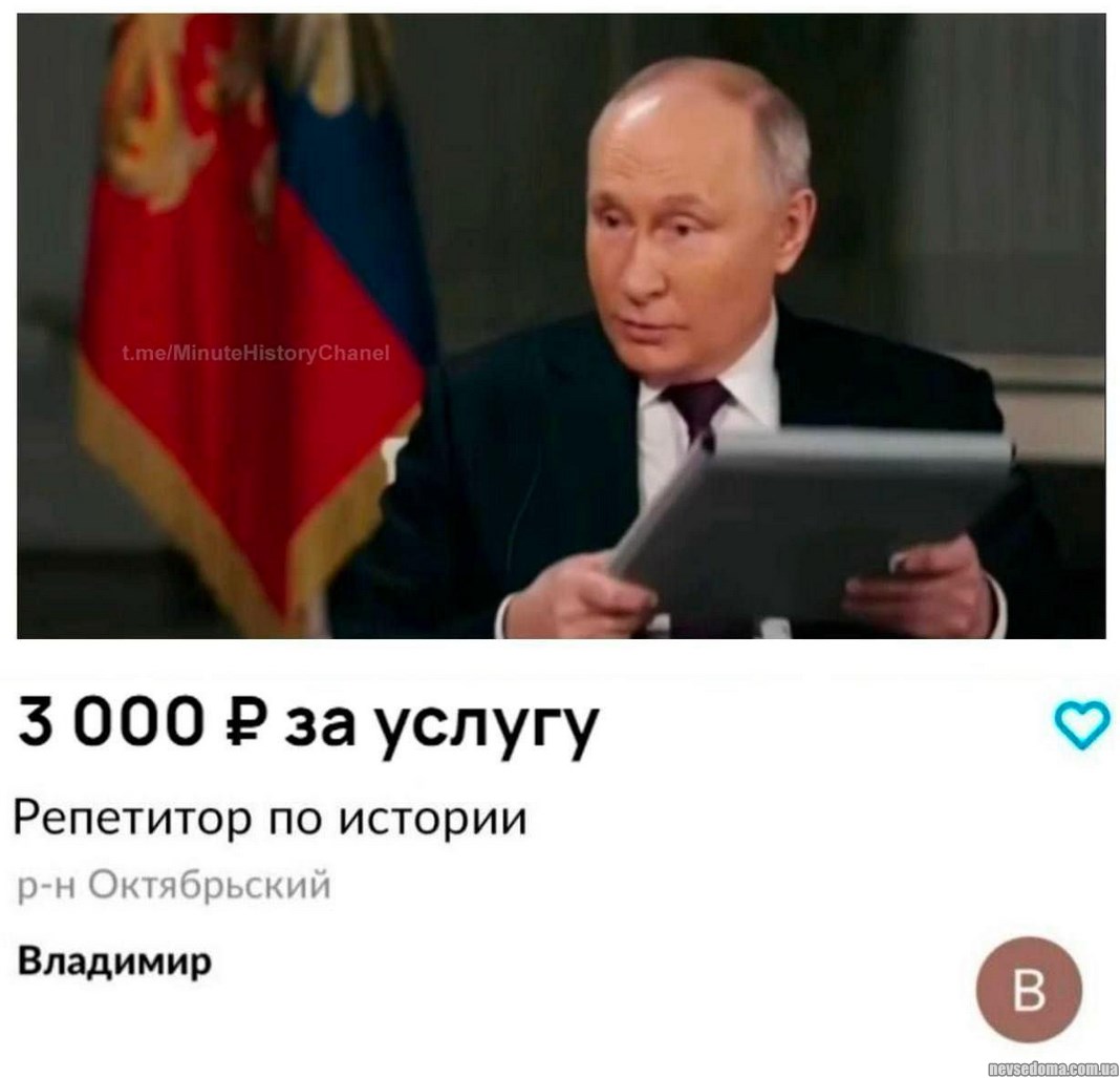 - А теперь про тему недели, подобрали мемы и картинки из интернета, Такер Карлсон и диктатор рф