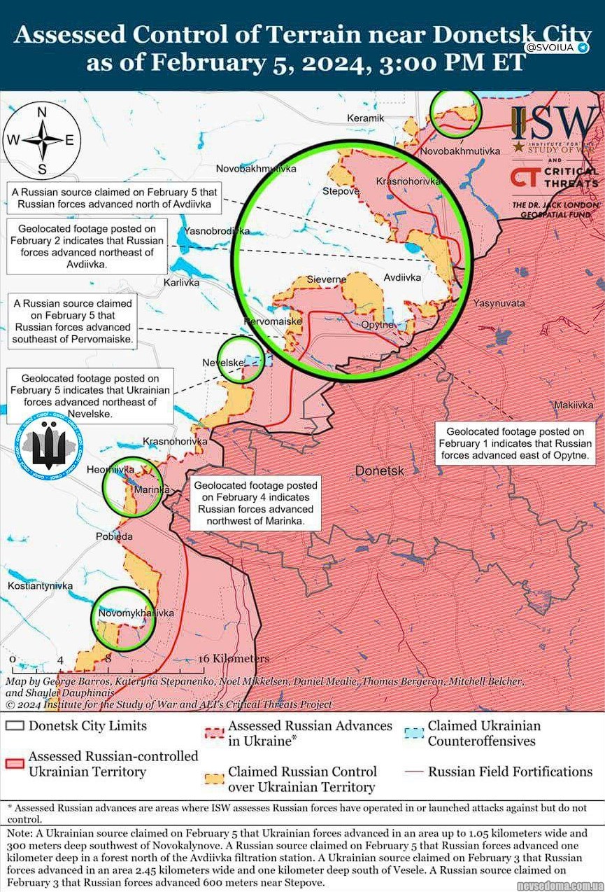 ВСУ совершили наступление в районе города Авдеевка, сообщили в ISW. По данным аналитиков, продвижение украинских сил произошло к юго-западу от города.