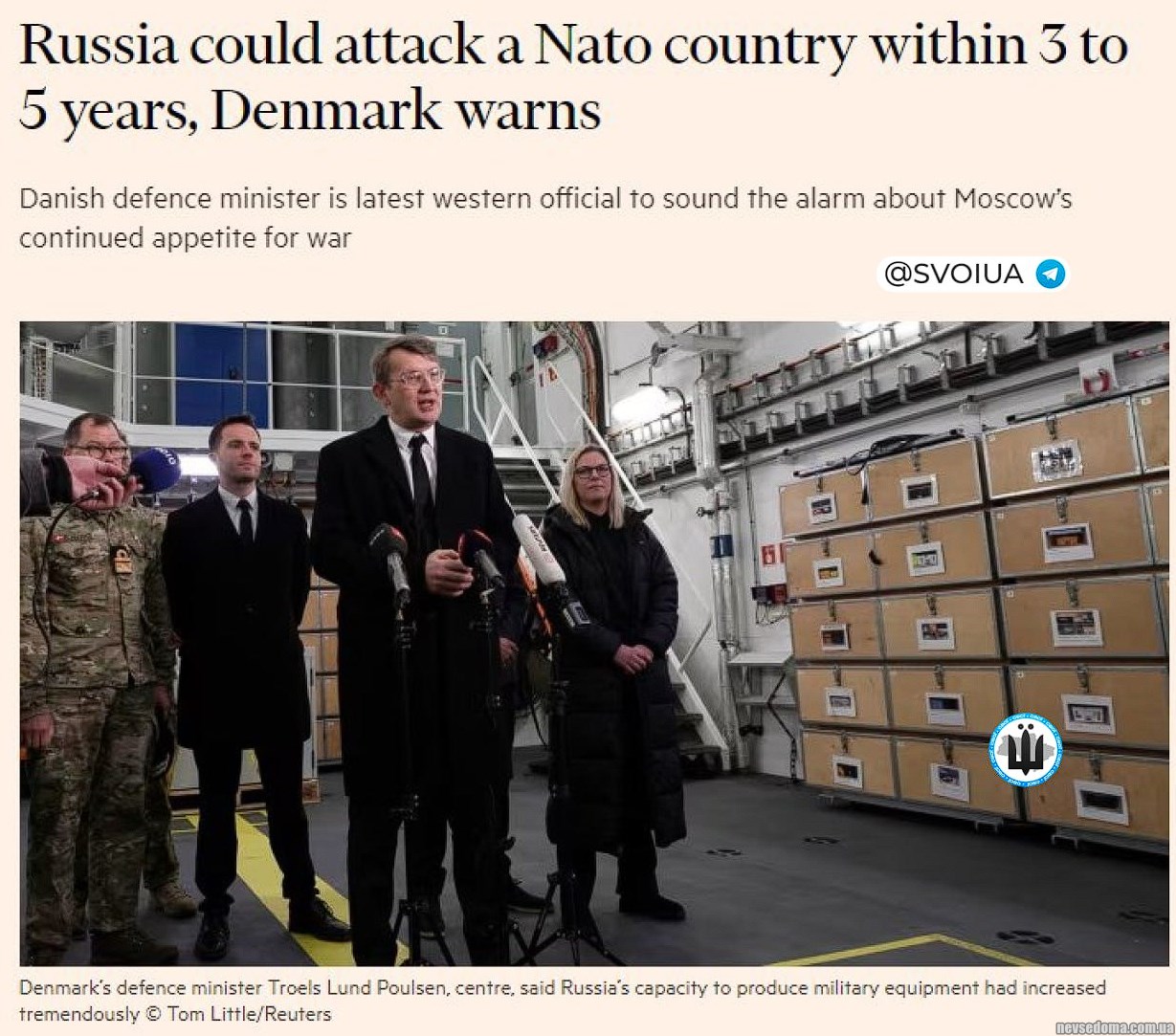 - россия может напасть на страну НАТО в течение 3-5 лет, - министр обороны Дании Поульсен.