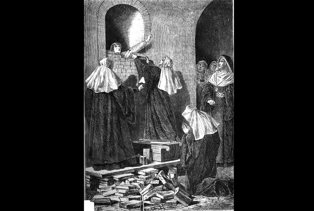 Замуровывание согрешившей монахини. Иллюстрация из книги XIX-го столетия