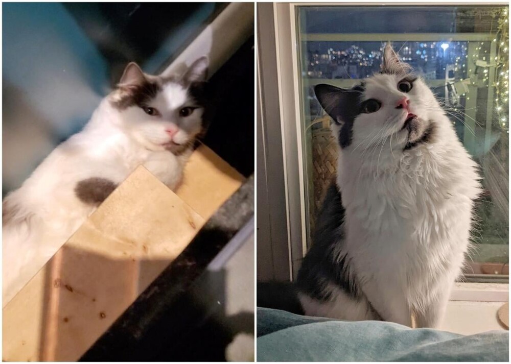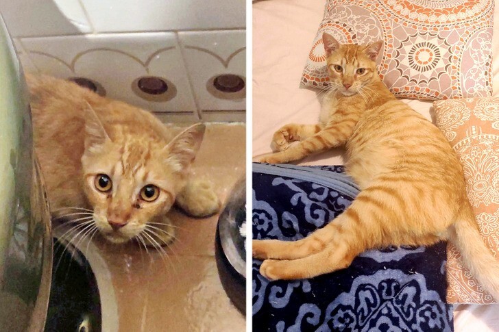 12. Он был наполовину диким и напуганным. Сегодня, 3 месяца спустя, он счастливый домашний кот, которому все интересно