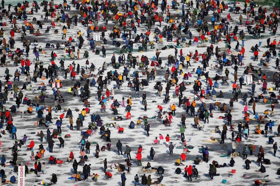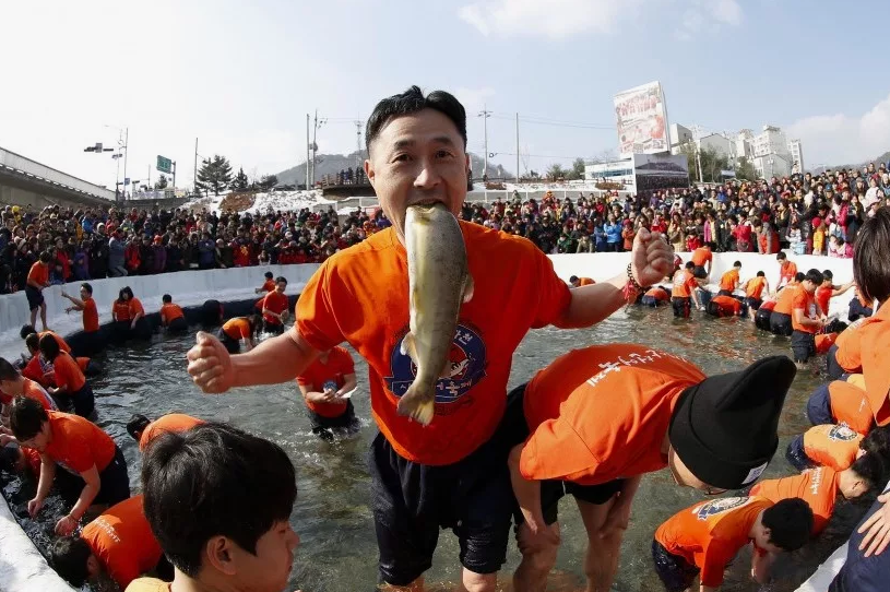 Куда веселее, чем купаться на крещение, прыгать в холодную воду ради того, чтобы поймать себе там жирненькую форель. Именно ради пятиминутного ныряния в ледяную воду и собираются корейцы в Хвачхоне на Ледовый фестиваль.