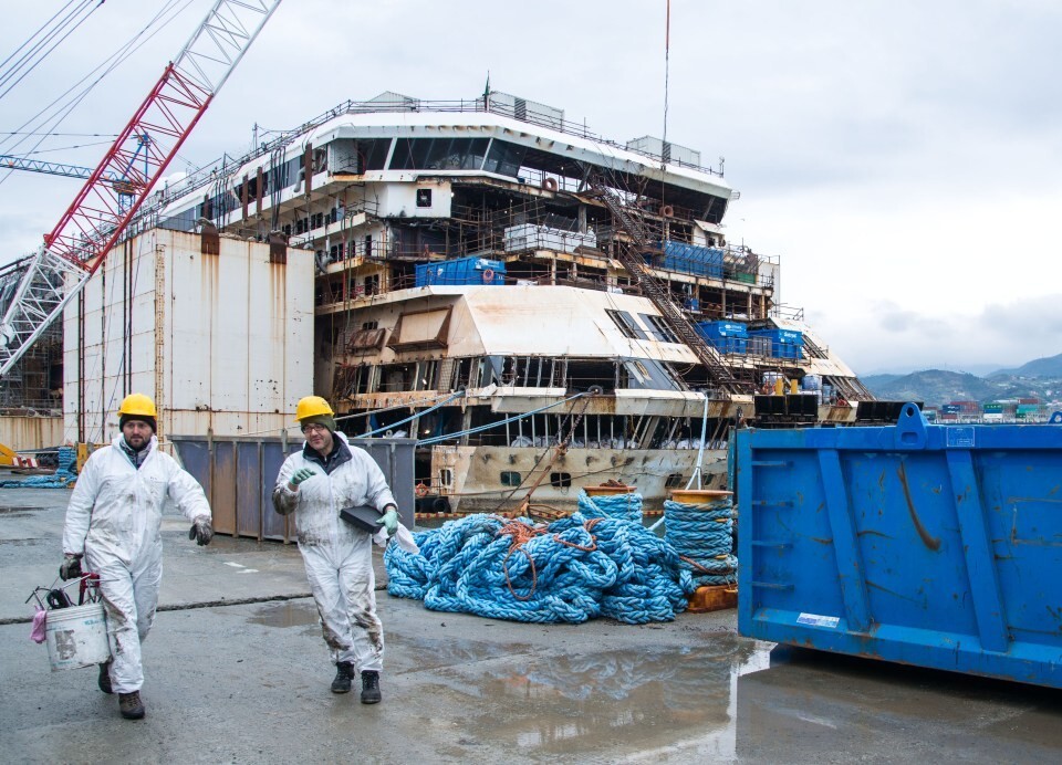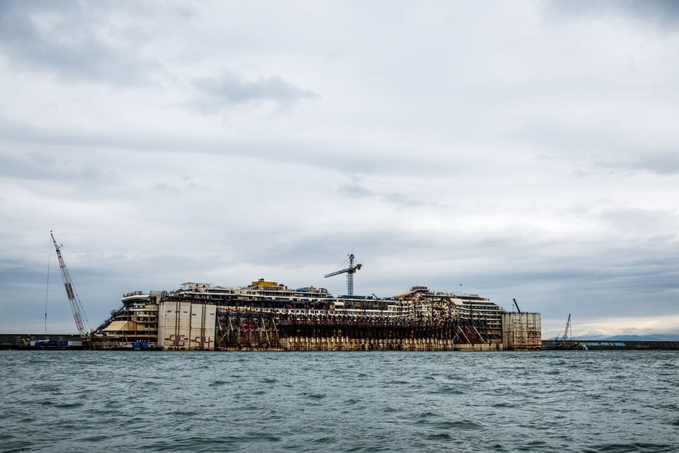 Эти фотографии грустно напоминают о том, что ничто не вечно в этом мире: и даже самые роскошные вещи иногда оказываются бесполезным куском железа. Круизное судно "Коста Конкордия" потерпело крушение в ночь с 13 на 14 января 2012 года у итальянского острова Джильо. Погибло 33 человека. Это крупнейшее в мировой истории судно, потерпевшее крушение. После катастрофы лайнер долгое время лежал "на боку", и только в сентябре 2013 года корпус лайнера был приведён в вертикальное положение и поставлен на специальную платформу. Спустя несколько месяцев его перевезли в Геную для утилизации.
