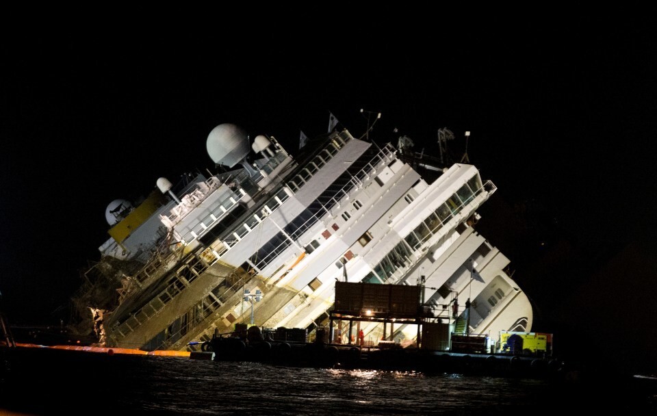 Причина крушения "Конкордии" — ошибки экипажа. Капитан Франческо Скеттино принял решение отклониться от заданного курса, в результате чего судно занесло на скалы, и оно частично затонуло. Скалы проделали в корпусе 53-метровую пробоину, после чего вышли из строя важные узлы и агрегаты. Скеттино одним из первых прыгнул с тонущего судна, чтобы спасти свою жизнь и оставив своих пассажиров умирать. Вскоре после инцидента на место происшествия прибыли сотрудники береговой охраны, чтобы спасти 4 252 человек, находившихся на борту, включая 1 023 члена экипажа. После шестичасовой спасательной операции большинство людей доставили на берег.