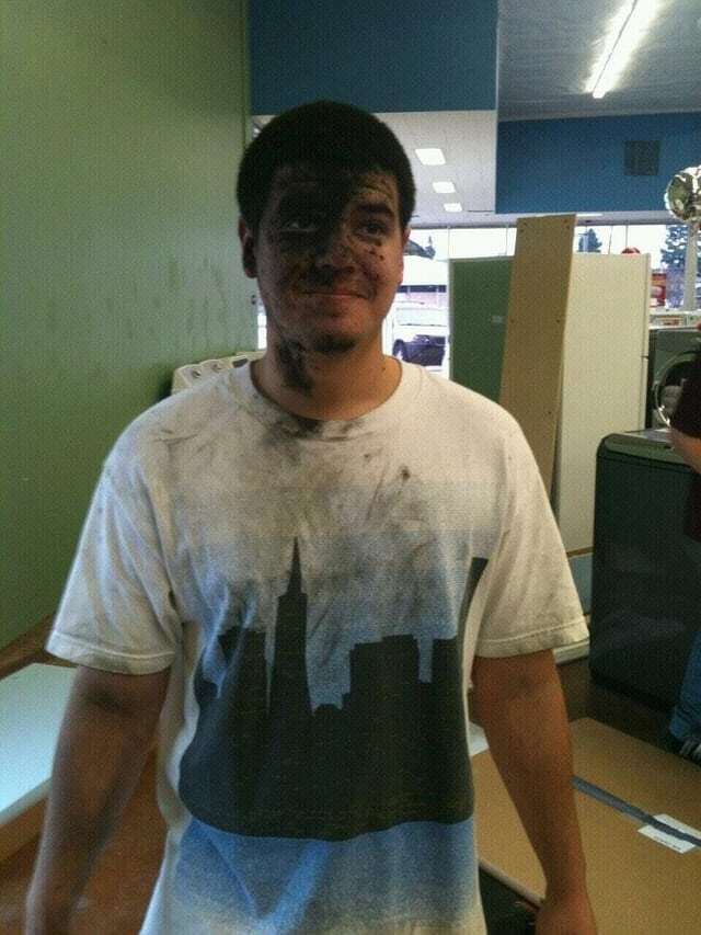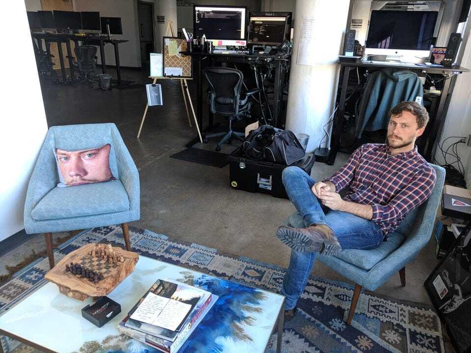 Это последний рабочий день моего коллеги, поэтому мы сделали офисную подушку на память о нём. Почему-то он не был счастлив.