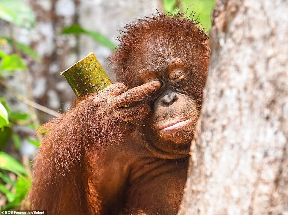 В Индонезии есть специальный реабилитационный центр, где ухаживают за маленькими орангутанами-сиротами. О малышах в возрасте от трёх до семи лет заботятся суррогатные матери. Эти очаровательные снимки были сделаны в двух центрах орангутанов на Калимантане, Индонезия.